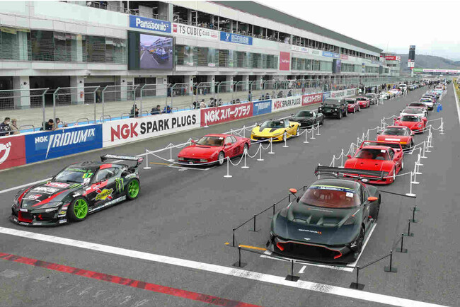 アルファタウリF1(角田裕毅のデビューイヤー車両)、インディカー(佐藤琢磨の優勝車両)、R390 GT1(ル・マン総合3位車両)、TS010(ル・マン総合2位車両)といったレースマシンやラリーマシン、フェラーリSF90ストラダーレやホンダNSXタイプSなどのスーパーカー、そして旧車やチューニングカーなど約90台がホームストレートに整列。参加者はコース上から間近に豪華な車両を見ることができます。