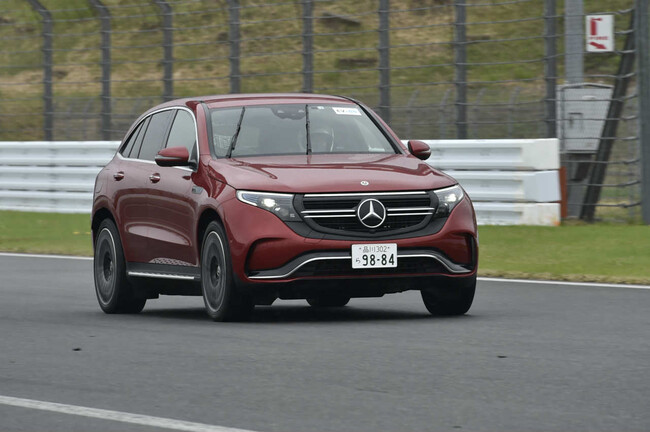 電気自動車(EV)の体験試乗会。一部の車種では富士スピードウェイのホームストレートを使った加速体験(同乗試乗)も可能です。