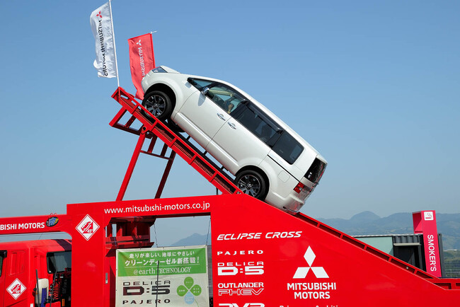 驚異の45 度傾斜を登り切る4WD 車の走行性能を同乗体験。発売前にして話題沸騰の軽SUV、デリカミニも展示されます。