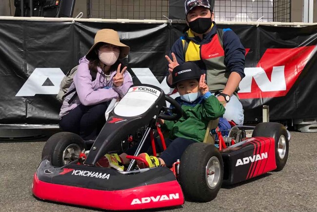 お子様に運転の楽しさを知ってもらうのにピッタリなキッズカート体験会。参加者には「YOKOHAMA」のロゴ入りキャップをプレゼント。