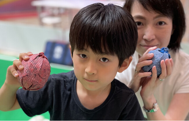 衣類などからリサイクルされた素材で自身が作製したボールを使ってプレーします。ボールの素材は、中古衣類から再生されたリサイクルフェルトを、ボールを編む際に使うひもには、販売できないサンプルシューズや従業員から回収した靴ひもを採用しています。パラスポーツに自然と親しみながら、循環型モノづくりを通してCO2削減に関心を持ち、さらに、モノを大切にする心を育み、さまざまな人たちとプレーすることで多様性を感じることもできるコンテンツです。