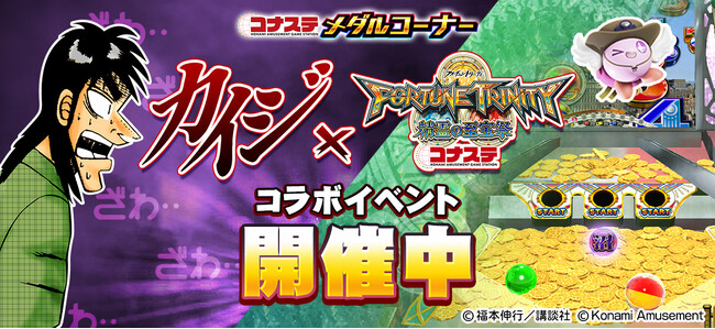 株式会社コナミアミューズメントは、『FORTUNE TRINITY 精霊の至宝祭 コナステ』において、『カイジ』とのコラボレーションイベントを本日2023年4月10日(月)から5月8日(月)5:00までの期間に開催することをお知らせします。
