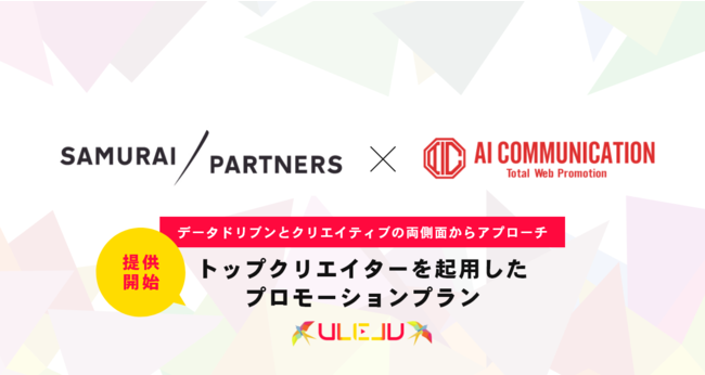 総合WEBプロモーション会社としてHP制作から広告運用、WEBコンサルティングまで手がける株式会社AIコミュニケーション(本社:愛知県名古屋市、代表取締役:津山竜也、以下AIコミュニケーション)が展開するYouTube企業案件専門コンサルティングサービス「ULELU」は、トップクリエイターを起用したプロモーション事業などを展開する株式会社サムライパートナーズ(本社:東京都千代田区、代表取締役:入江巨之、以下サムライパートナーズ)と新たなマーケットの開拓とクリエイティブなアプローチの加速を目的として業務提携いたします。本提携により顧客が抱えるプロモーション戦略課題をデータドリブンとクリエイティブの両側面から解決に導きます。