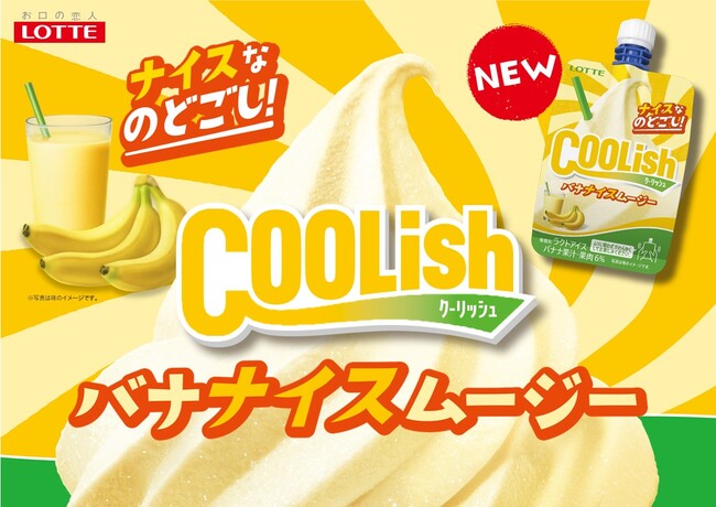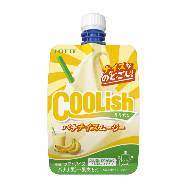 株式会社ロッテは、4月24日(月)に“飲むアイス”の「クーリッシュ」ブランドから、『クーリッシュ バナナイスムージー』を発売します。まろやかなバナナの味わいが、微細氷で後味スッキリ楽しめる、「ナイスなのどごし」の新商品です。商品名は遊び心も含ませ、「ナイスなのどごしを楽しめ、スムージーのように飲めるアイス」であることから、「バナナイスムージー」としています。これからの時期にぜひお楽しみください。