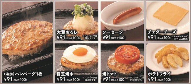 ▶“追加ハンバーグ”も超お手軽価格で!税込100円 トッピング