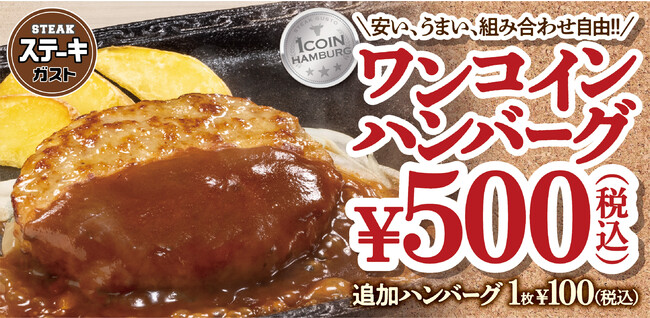 ステーキガストに組み合わせ100通り超・枚数もトッピングも自由自在の『ワンコインハンバーグ』(※)誕生!~GWはご家族みんなでハンバーグ祭り!~