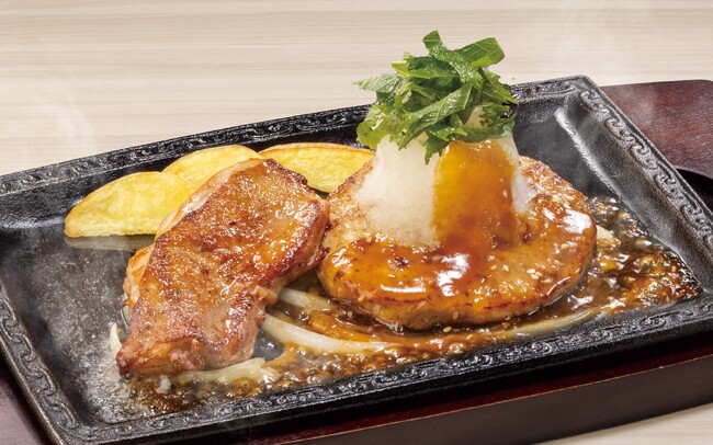 ワンコインハンバーグ(約110g)+大葉おろし+炭焼き風チキングリル