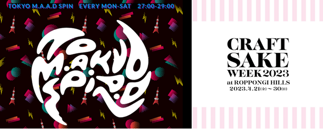 ラジオ局J-WAVEで放送中、深夜のダンスミュージックプログラム『TOKYO M.A.A.D SPIN』(毎週月曜~土曜27:00-29:00)は、4月21日(金)から開催される日本酒の魅力を再発見できるイベント「CRAFT SAKE WEEK 2023 at ROPPONGI HILLS」の音楽を全面プロデュースいたします。