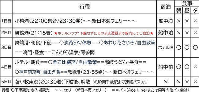 【小樽港発】爽やかな船旅で四国や京都へ ホテルシップで船内で特別な夜を過ごす 添乗員付き団体ツアー発売