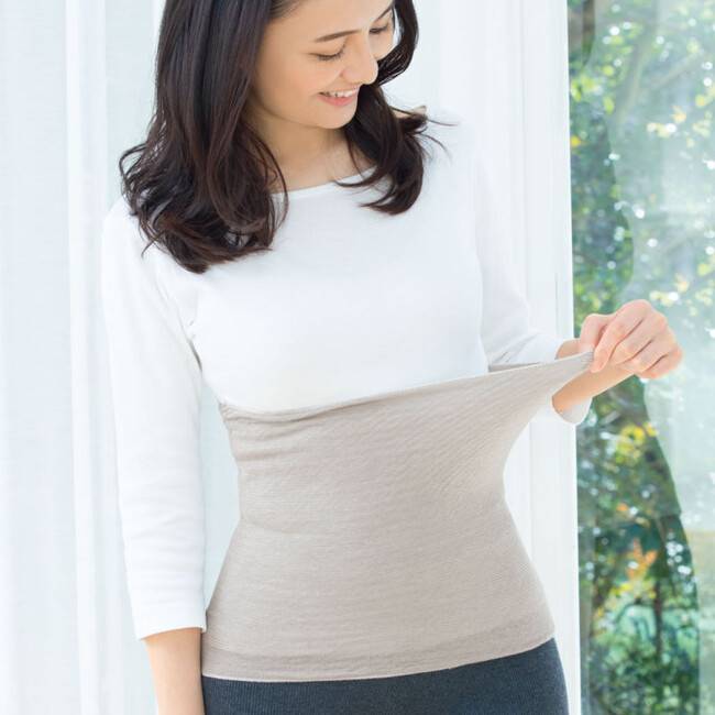富士山溶岩とレーヨンのダブルの力で、着用して1分で「ほわっ」、10分で「ぽかぽか」とした温かさが実感できるのが特長です。薄くて着ぶくれしないので、夏場もクーラー冷えしやすいお腹や足元を守ってくれます。