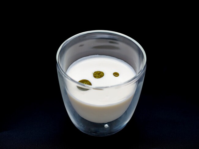 蕪をコトコトと煮込み旨味を凝縮させ、蕪の茎を裏ごししたピューレを加えて、さらっとした飲み口の温かいスープに仕上げました。