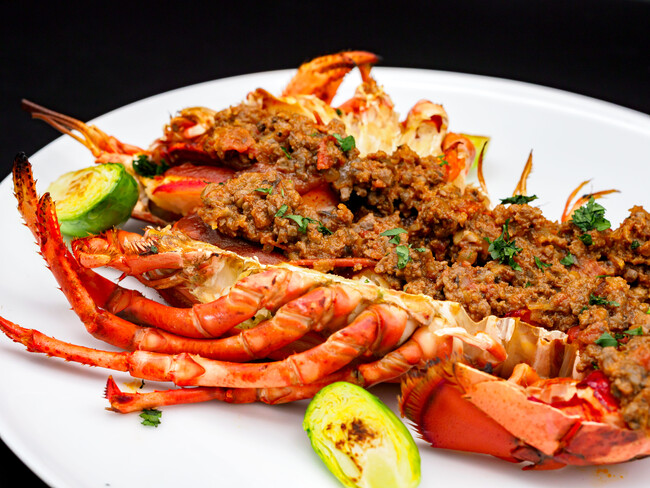 今月のロブスター料理は、丸々一尾を豪快にロースト。