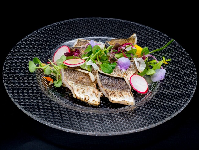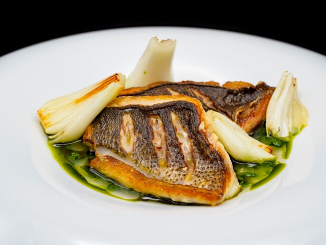 オリーブの香り豊かなキャビア・ド・オーベルジーヌが淡白ながらも味わい深いカマスの旨味をより引き立たせます。