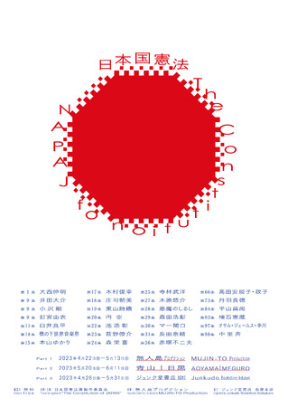 本展を憲法記念日の年中行事とすべく、その第1回を「無人島プロダクション」「青山 | 目黒」「ジュンク堂書店 池袋本店」の 3 会場で開催いたします。