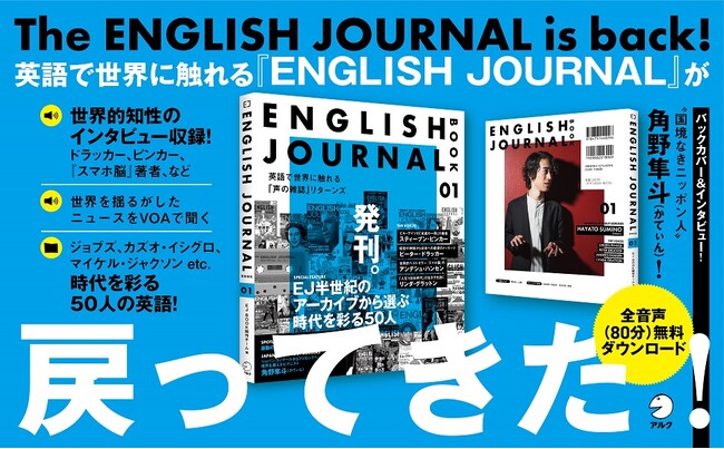 英語や英語圏の文化を学び、身近に感じていたい学習者に向け、半世紀以上にわたって月刊誌として刊行されてきた英語学習誌『ENGLISH JOURNAL』(以下EJ)。2023年1月号(2022年12月刊)をもって、月刊誌としての役割に一旦休止符を打ちましたが、このたび、音声ダウンロード付き書籍『ENGLISH JOURNAL BOOK』(以下EJB)として“発刊”いたします。