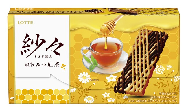 株式会社ロッテは4月25日(火)、繊細な見た目とパリパリとした食感が特長のチョコレート「紗々」ブランドから、甘くふわりと香るはちみつ紅茶チョコを織り込んだ「紗々<はちみつ紅茶>」を発売いたします。紗々ならではの上質な味わいをぜひお楽しみください。