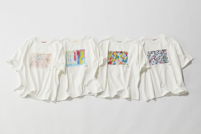 また、これまでに発売したコラボ商品を購入したお客様からの「トップスとボトムスをセットアップで着たい」という声にお応えし、春に先行発売した「アートプリントパンツ」「アートデニムパンツ」と同柄のプリントを使用し、上下で着用して楽しんでいただけるようにしました。更に、幅広いお客様にアートのある暮らしを楽しんでいただけるよう、一部の商品はジュニアからレディース、メンズまで対応するサイズ展開となっています。