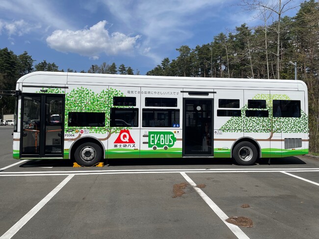 ・デザイン:環境にやさしい「電気のバス」であることが一目でわかるように、コンセントをかたどった「EV-BUS」のロゴをアイキャッチに、そのロゴマークから伸びる枝が富士山の緑に繋がることで、自然環境への配慮と世界遺産・富士山の自然を守り続けていこうという決意を表しています。