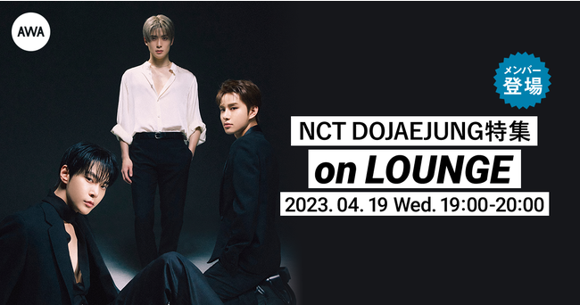AWA株式会社(本社:東京都港区、代表取締役CEO:冨樫晃己)が運営する、サブスクリプション型(定額制)音楽ストリーミングサービス「AWA(アワ)」は、2023年4月19日(水) 19:00~20:00の1時間に渡り、無料で誰でも参加できるオンライン空間「ラウンジ」で、NCTメンバーのドヨン、ジェヒョン、ジョンウで構成されたユニット「NCT DOJAEJUNG」のメンバーがチャットで参加するAWAラウンジを開催いたします。