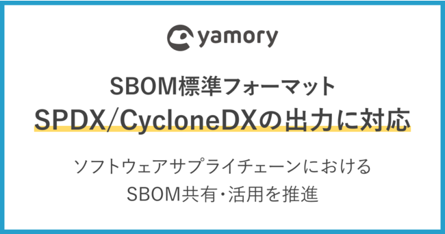 Visional グループが運営する、脆弱性管理クラウド「yamory(ヤモリー)」(https://yamory.io/ 以下、yamory)は、SBOM(Software Bill of Material)の標準フォーマットである「SPDX」と「CycloneDX」の出力対応を2023年4月18日より開始します。これにより、ソフトウェアサプライチェーンの中で組織を越えて SBOM を共有するための相互運用性が向上します。