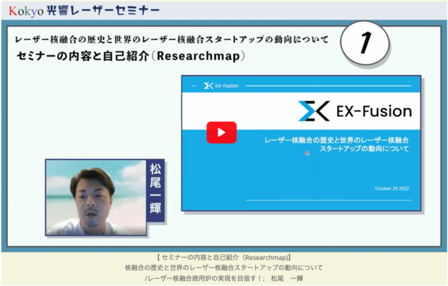 松尾様自身がレーザー核融合商用炉の実現を目指した会社を経営している立場から、それらの動向を概説いただいたセミナーの動画配信をいたします。