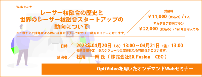 レーザー核融合の歴史と世界のレーザー核融合スタートアップの動向について/ Webセミナー開催についてのお知らせ/オンデマンド動画配信