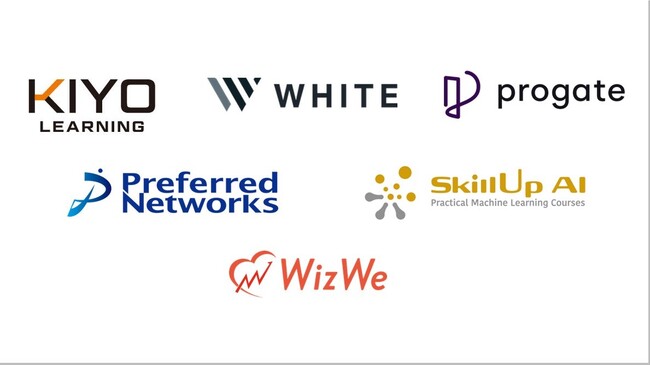 今回パートナーシップ契約を締結した企業は、KIYOラーニング株式会社(本社:東京都千代田区)、WHITE株式会社(本社:神奈川県横浜市)、株式会社Progate(本社:東京都渋谷区)、株式会社Preferred Networks(本社:東京都千代田区)、スキルアップAI株式会社(本社:東京都千代田区)の5社。(順不同)