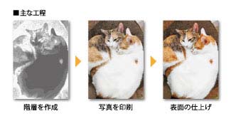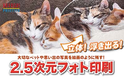 2.5次元フォト印刷は、まるでジオラマのような仕上がりで、誰もが触ってみたくなる立体的な印刷です。見てびっくり、触って驚きの「2.5次元フォト印刷」で、宮城県では現在、ハヤシ印刷のみの新技術。大切なペットや思い出の写真を絵画の様に残してみませんか?。オリジナルの記念品やご家族やご友人へのプレゼント等にも最適です。