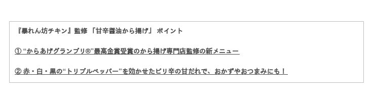 「暴れん坊 甘辛醤油から揚げ」 概要