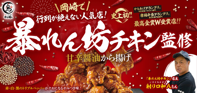 【から好し】4月20日より“からあげグランプリ(R)”最高金賞受賞『暴れん坊チキン』監修の「甘辛醤油から揚げ」が新登場!