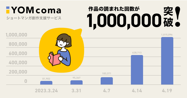 株式会社ブックリスタ(本社:東京都港区、代表取締役社長:村田茂、以下「ブックリスタ」)が提供する、ショートマンガを創作するクリエイターを支援するサービス「YOMcoma(よむこま)」β版は、2023年3月24日(金)にリリースし、作品の読まれた回数が合計100万件を突破したことをお知らせいたします(2023年4月19日時点)。