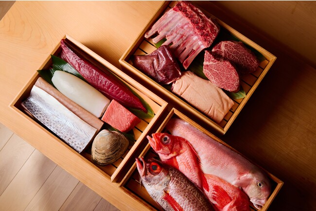 今回メイン食材としてご用意する「鮪」は、KIZAHASHIの料理長・岡野 真介が自ら厳選したものを造里や握りなど、お好みの食べ方でお召し上がりいただけます。 他にも、太刀魚やこの時期に旬を迎える鱸(すずき)などの様々な食材を集めたネタ箱の中から好きな食材をお選びいただけます。