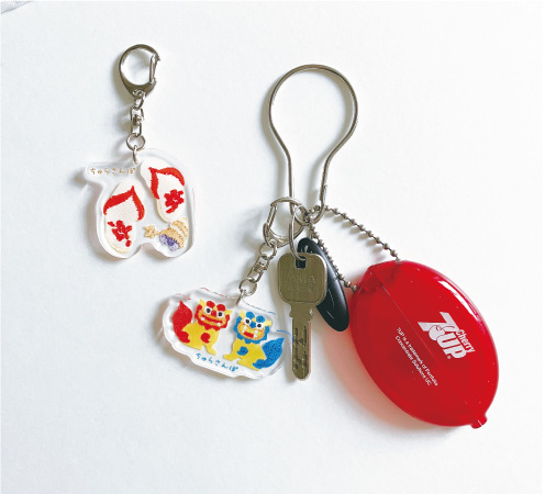 新発売のキーホルダーをよく見てみると、ニッチで可愛い沖縄のモチーフたちが刺繍風になっている!?