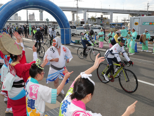 コースは2種類。サイクルバス利用とあわせて総距離115キロメートルの「鳴門・南あわじグルっとコース」は午前5時半からスタート。絶景やさわやかな風を感じながらサイクリングを楽しめます。スタート、ゴールを含め計6か所のエイドステーション(休憩所)では、「あわじ島バーガー」や本場徳島の味「東大ラーメン」など、ご当地グルメに舌鼓。総距離67・5キロメートルの「鳴門のおいしいもの満腹コース」(午前8時スタート)でも同じく4か所のエイドステーションで東大ラーメンやスイーツ、ドリンクを提供します。