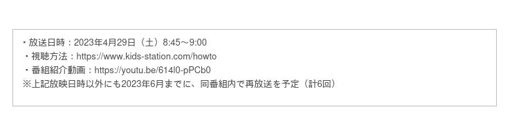 くふうカンパニーグループにおいて、子ども向け社会体験アプリ『ごっこランド』を運営する株式会社キッズスター(以下「キッズスター」)は、CS放送にてこども・アニメ専門チャンネルを運営する、株式会社キッズステーション(以下「キッズステーション」)と再びタッグを組み、様々なお仕事について楽しく学べるテレビ番組『ごっこランドTV~2023 Spring~』を2023年4月29日(土)に放送します。