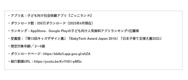 【子ども向け社会体験アプリ『ごっこランド』について https://biz.kidsstar.co.jp 】