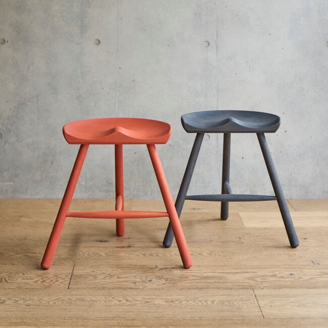 シューメーカースツールのひとつの特徴である3本脚の歴史は、15世紀に遡ります。現代のように床がフラットではなく、石畳の床や外での作業に用いられることが多かった作業用の椅子は、3点で支えることでガタツキを抑えることができたから、というのがその理由。主に牛の乳搾り用に使われてきたスツールは、後に、靴職人が座り心地を良くするためにお尻のかたちにあわせて座面を削ったことで、現在のかたちに近づきました。このことからシューメーカースツールと呼ばれるようになりました。デンマークはインテリア産業では世界に名立たる国ですが、海外への生産シフトにより自国での家具製造は年々縮小しています。その中でシューメーカースツールは、木取りから断裁、加工、組上げまで一連の工程を、デンマークの工房でひとつひとつハンドメイドで制作しています。