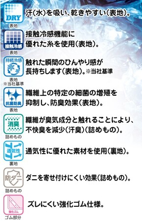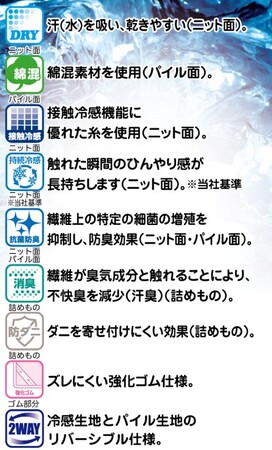 表生地は接触冷感素材、裏生地はパイル素材で気温に左右されることなく快適に睡眠できる敷きパッドです。