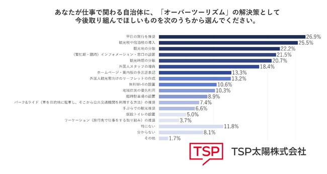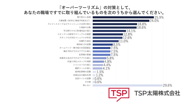 TSP太陽株式会社(本社:東京都目黒区、代表取締役社長 池澤 嘉悟、以下「TSP太陽」)は、観光業にかかわる517名に“オーバーツーリズム”に関するアンケートを実施しました。アンケートの結果から今後の課題と求められる対策を解説いたします。