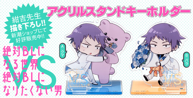 『絶対BLになる世界VS絶対BLになりたくない男』アクリルスタンドキーホルダーが新潮ショップにて販売開始!
