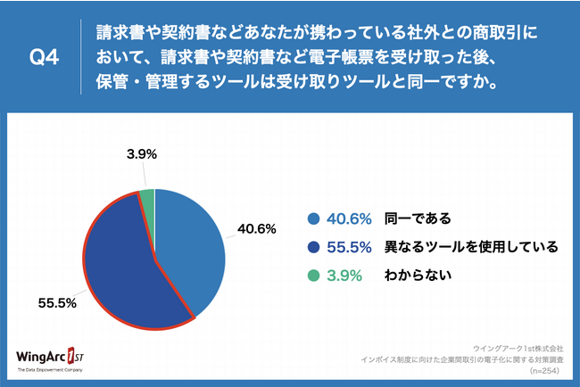4.半数以上が、電子帳票の保管・管理と受け取りは「異なるツール」