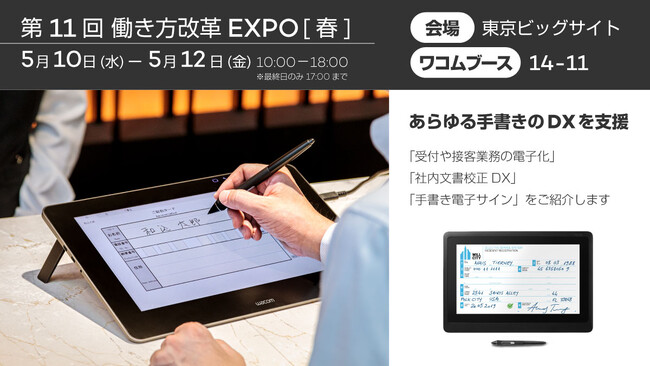 株式会社ワコムは5月10日(水)から12日(金)の3日間、東京ビッグサイトにて開催される「第11回 働き方改革 EXPO【春】」に出展します。(ワコムブース:14-11)
