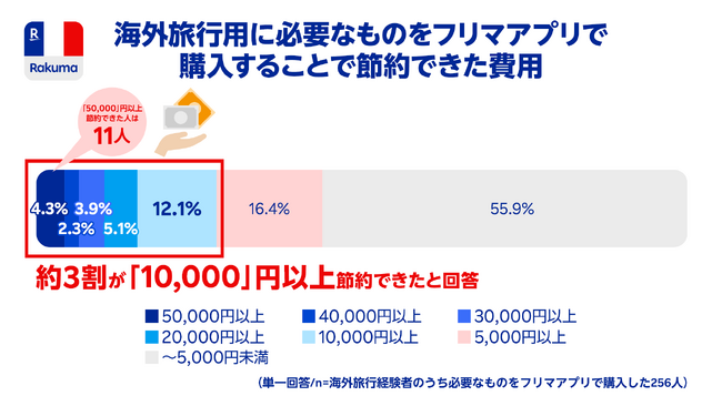 ●海外旅行用に必要なものをフリマアプリで購入したことで「10,000円以上」節約できた人が約3割