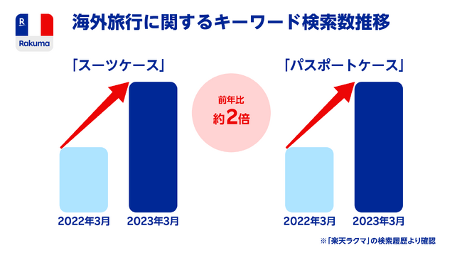 コロナ禍と比べ海外旅行需要が回復しているとされる中、「楽天ラクマ」では海外旅行に紐づくキーワードの検索数が増加しています。2023年3月の検索数をキーワード別に前年同月比でみると「スーツケース」と「パスポートケース」が約2倍となったほか、「ネックピロー」は約1.8倍、「変圧器」は約1.3倍となり、海外旅行に対するユーザーの意欲が高まっていることが考えられます。本調査では、海外旅行における節約意識と、それに基づくフリマアプリの活用実態について明らかにします。