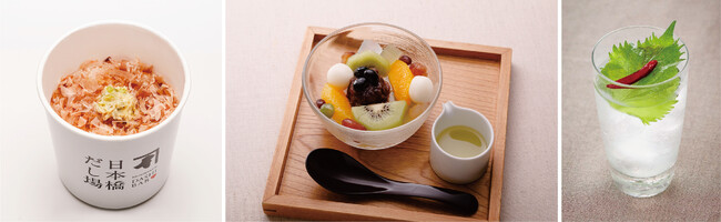 「にんべん 日本橋本店」では、削りたてのかつお節を提供する「日本橋削り場」や、「一汁一飯」がコンセプトの「日本橋だし場」も人気です。