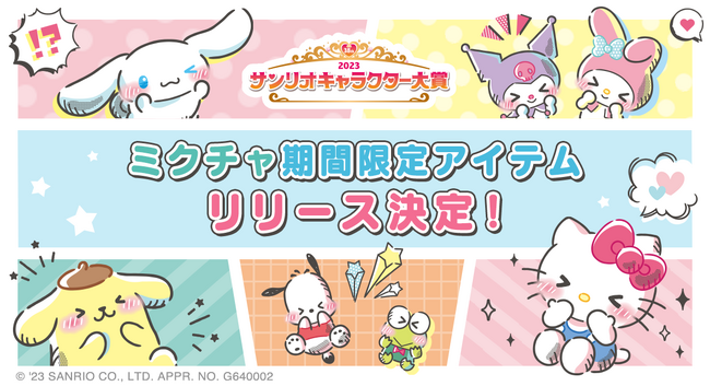 「ミクチャpresents サンリオキャラクター大賞 2023アンバサダー」就任オーディション開催!ミクチャアプリ内で使える応援アイテム全12種も新登場