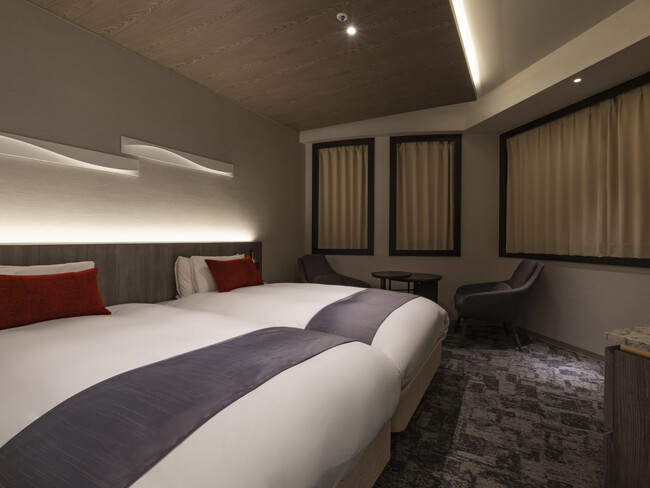 『寛ぐ』をテーマに、ご家族やご友人との宿泊にゆったりと過ごせるスマートでシンプルな空間をご提供します。ツインのお部屋はハリウッドタイプを採用し、客室のカウチスペースを確保しました。