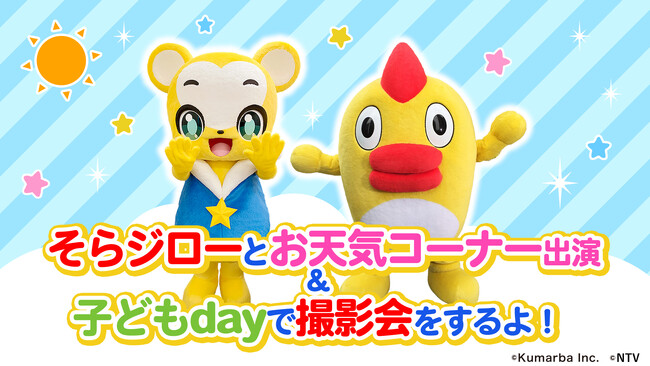 キッズ向けYouTube「クマーバチャンネル」を運営する株式会社Kumarba(本社:東京都品川区、代表取締役社長:樋渡昇一郎)は、日本テレビ放送網株式会社(本社:東京都港区 代表取締役社長執行役員:石澤顕、以下「日本テレビ」)の取組である、日テレ系「こどもday」の一環として、「クマーバ」とお天気キャラクター「そらジロー」のさまざまなコラボレーションを実施いたします。