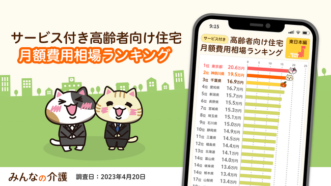 【みんなの介護】老人ホームの月額費用ランキング<サービス付き高齢者向け住宅 東日本編>