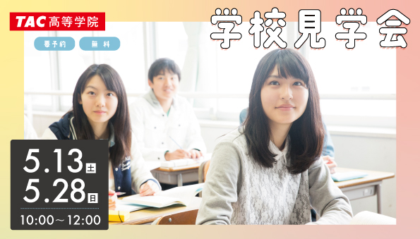 TAC高等学院にて学校見学会を5/13(土)と5/28(日)に実施します。